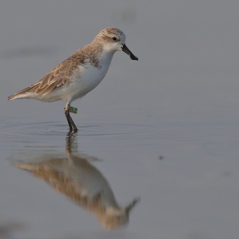 | Caption: “Lime Green 87 is an adult Spoon-billed Sandpiper banded by Russian researcher in July 2019. In 2019 there were sightings in Zhangjiang, the bird stayed till January 2020. This photo was taken on 9 November, 2020 in Zhangjiang, Leizhou. Fate links this little friend with Zhangjiang.” | |