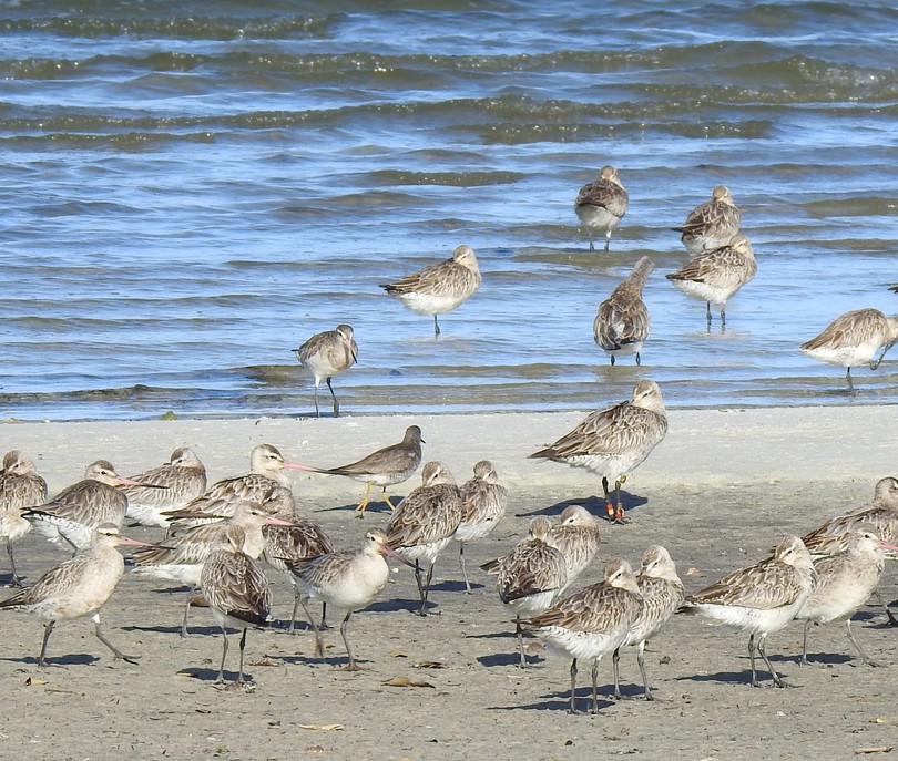 ![]() | Photographer: Sharron Krause Species: Bar-tailed Godwit Location: Toorbul High Tide Roost in Queensland, Australia Date photo was taken: 12 September 2020 Tag Info: “5RYBR” tagged in 2010 in New Zealand. |
