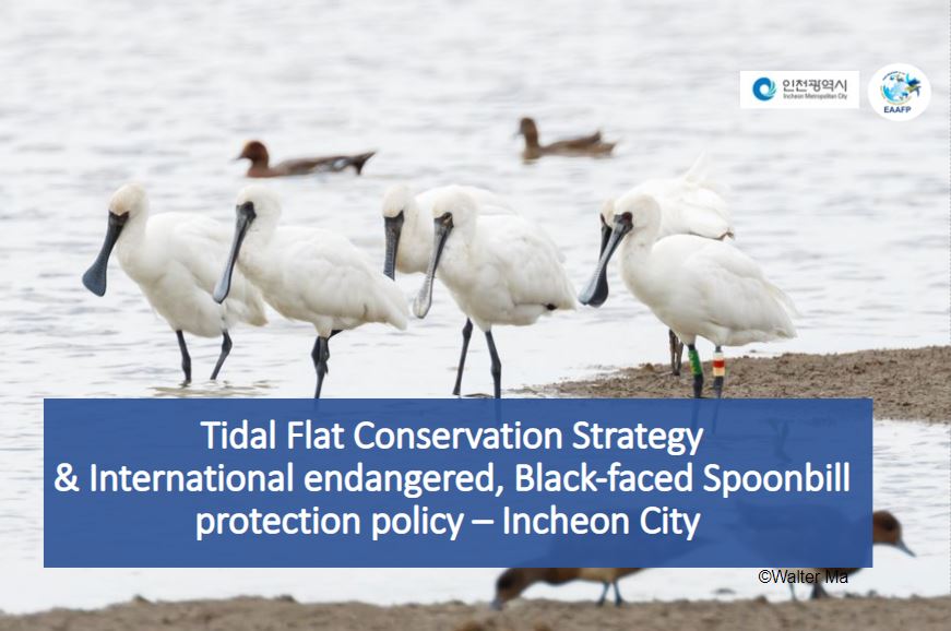 Mr. Dongkoo Yun, Director of EAAFP Foundation attended the meeting and gave a presentation on “Tidal flat conservation strategy – Incheon City & International endangered, Black-faced Spoonbill protection policy”. Recalling the recent inscription of Korean Getbol (Korean tidal flats) as the UNESCO World Natural Heritage, he shared views on the further potential listing of other Korean sites such as Tidal flats in Incheon. He emphasized the importance of Black-faced Spoonbill to foster partnerships and cooperation both internationally and domestically.