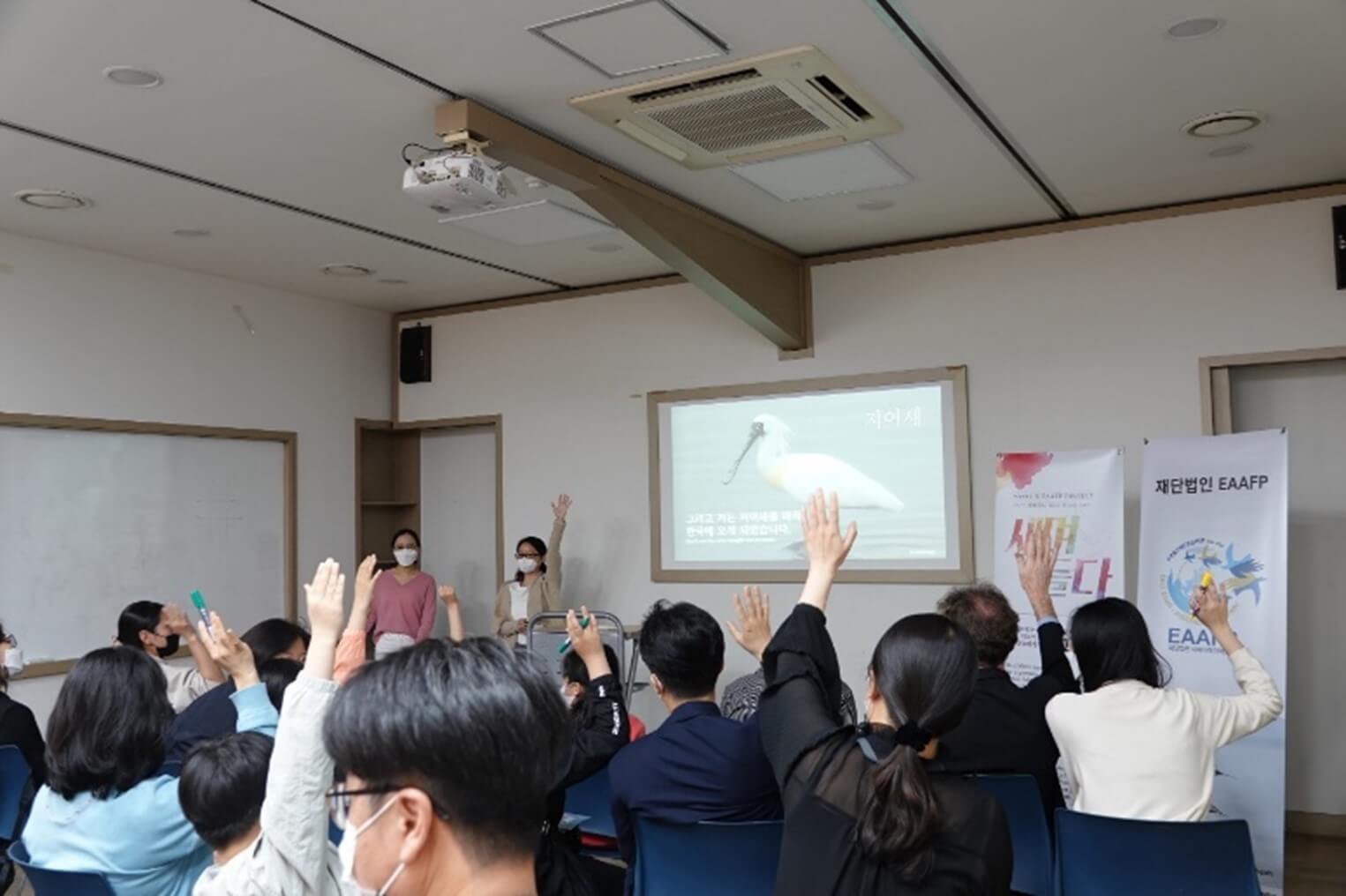 On 18th May, the first public lecture of the education program of 2022 <Bird Meets Arts> proceeded successfully. Launched in 2021, the <Bird Meets Arts> has been a cooperative project between the EAAFP Foundation and Yeonsu Foundation for Arts and Culture (YSFAC) which is located in the Incheon, Republic of Korea, the host city of EAAFP Secretariat. The project aims to promote the importance of conserving migratory waterbirds and their habitats, and raising awareness of the messages through cultural arts.