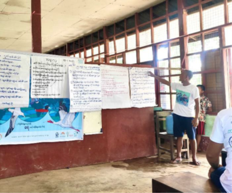 Following the opening ceremony, the workshop focused on the conservation of migratory birds in the GoM. NCS-Myanmar experts delivered presentations on various topics, including animal migration, the importance of wetlands and water for migratory birds, and the threats they face in the GoM. Participants were educated about the socio-ecological justice required for environmental conservation. They also explored the correlation between their livelihoods and migratory birds through group discussions, covering subjects such as bird hunting, attitudes towards migratory birds, traditional knowledge, local organization activities, and livelihoods and poverty reduction.