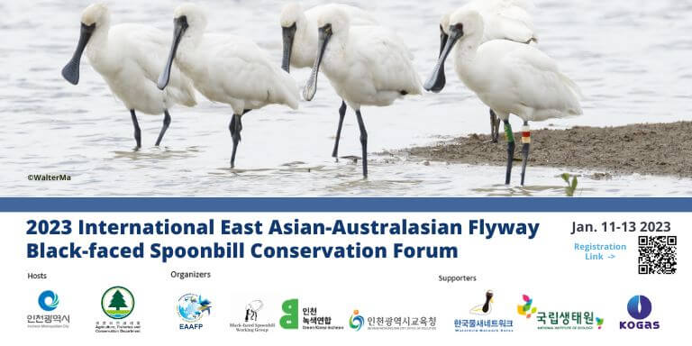 From 11 to 13 January 2023, the Environment Bureau of Incheon Metropolitan Government and the Agriculture, Fisheries and Conservation Department (AFCD) of Hong Kong Special Administrative Region co-hosted the “3rd Incheon-Hong Kong International East Asian-Australasian Black-faced Spoonbill Conservation Cooperation Forum”, with the EAAFP Secretariat and EAAFP Black-faced Spoonbill Working Group, Green Korea Incheon and Incheon Metropolitan City Office of Education as co-organizers. The Forum was a part of the action under the Sister Site Program Agreement between Songdo Tidal Flat (EAAF145), Incheon Metropolitan City, the Republic of Korea, and Mai Po Nature Reserve (EAAF003), Hong Kong Special Administrative Region, the People’s Republic of China, which was signed in 2019 (link).