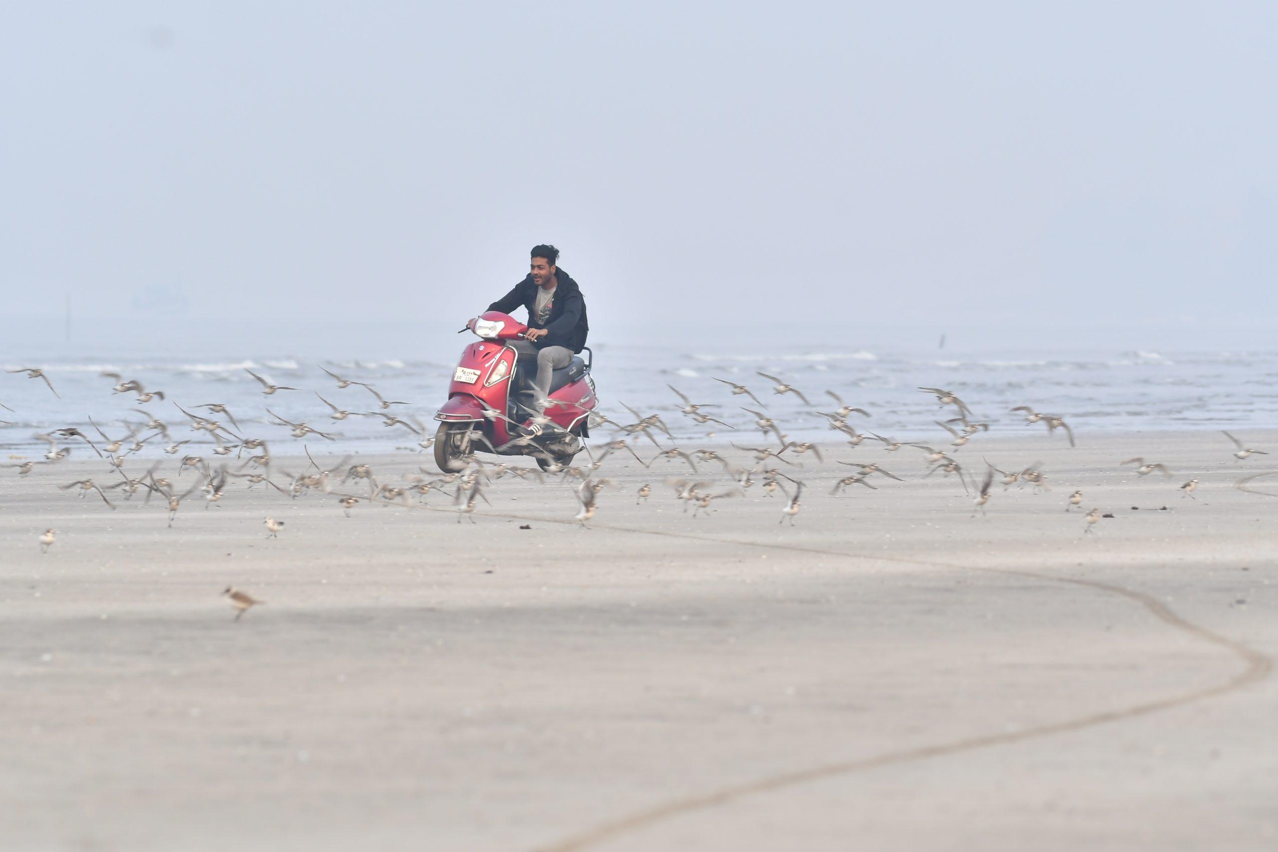 Figure 2 A tourist chasing shorebirds on Akshi Beach © Mandar Sawant