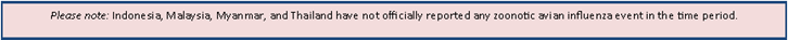 We consider avian influenza activity to be lower in the period from March to June, therefore reports of outbreaks in poultry or detections in wild birds and humans are expected to decrease over the coming months in the region.