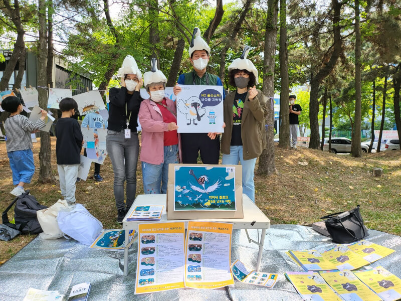 The EAAFP Secretariat also participated in the event as an associated organization and ran a booth – led by Ms. Jisun Lee, the Foundation coordinator of the EAAFP secretariat, and two volunteers. The booth, which provided a modified version – akin to a treasure hunt – of the BFS Lolo’s Flying Journey game and distributed flyers about EAAFP and waterbirds that migrate via EAAF, was very popular among the participants. In the modified Lolo migration game, children had to spot 5 locations hidden around the event venue and answer questions about BFS at each point. The original game, titled “Lolo’s Flying Journey,” was developed by WWF Hong Kong and recently modified in collaboration with the EAAFP Secretariat under the Incheon-Hong Kong Sister Site Arrangement signed in 2019. Both children and parents listened attentively to the explanation by the staff and gained a better understanding of East Asian-Australasian Flyway and environmental conservation.