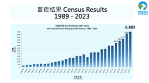 The census covered about 130 sites all over the world. Taiwan, Mainland China and the Republic of Korea are the major regions which attribute to the growth in the overall population. Taiwan remains the largest congregation site with 4,228 individuals comprising 64% of the global population. The year-on-year growth is 10.6%. In Mainland China, 1,307 individuals and 15.1% year-on-year growth were recorded. The number comprised 20% of the global population. In Ro Korea, the number of BFS reaches 54 individuals with an increase of 45.9%, i.e. 17 individuals. Contrarily, in Japan 610 individuals are recorded which shows a decline of 10.7% from last year, i.e. 73 individuals less.