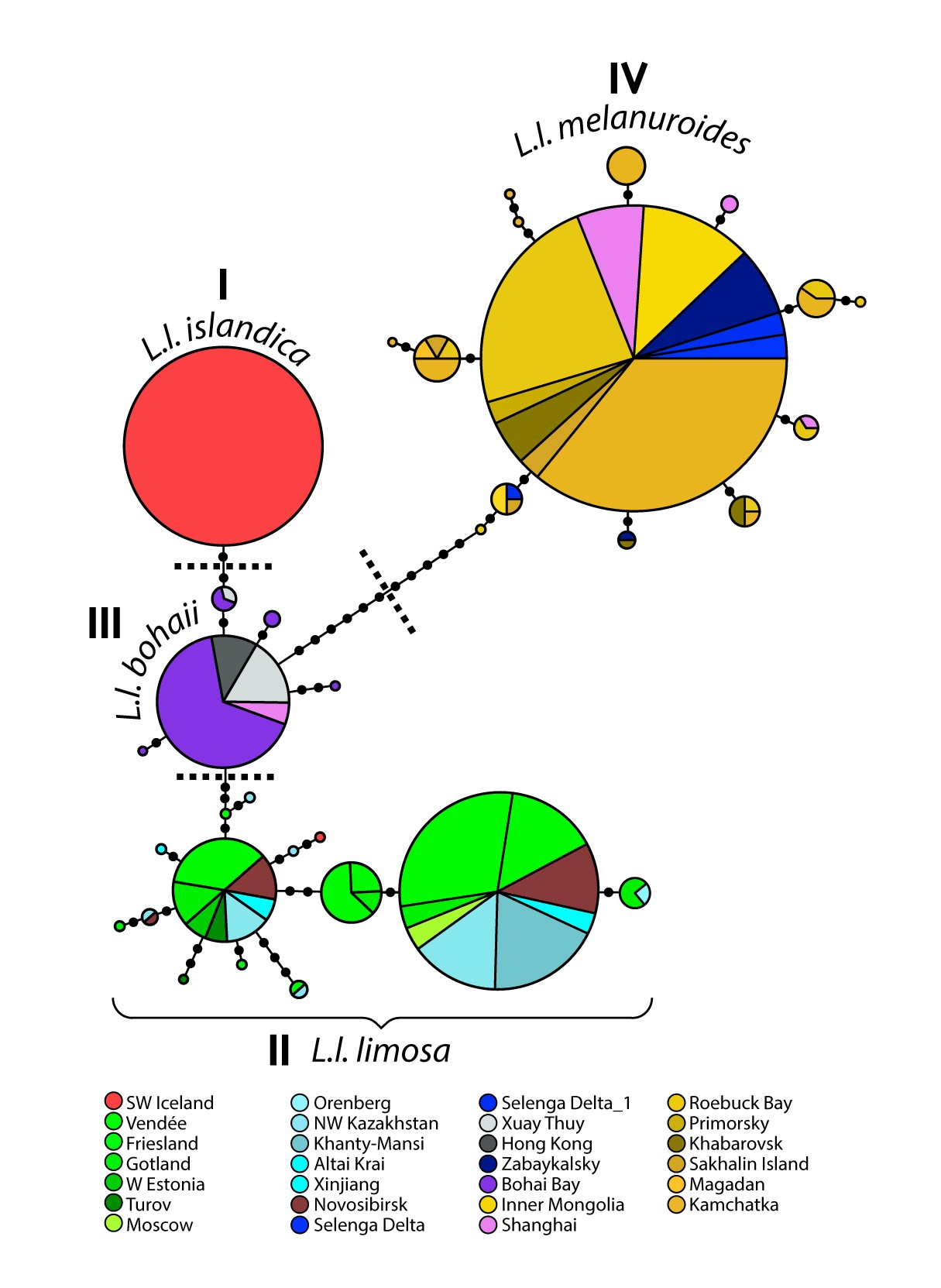 - Black-tailed godwits in Bohai Bay were indeed significantly larger than melanuroides, resembling limosa more than islandica, but with relatively longer bills than islandica.