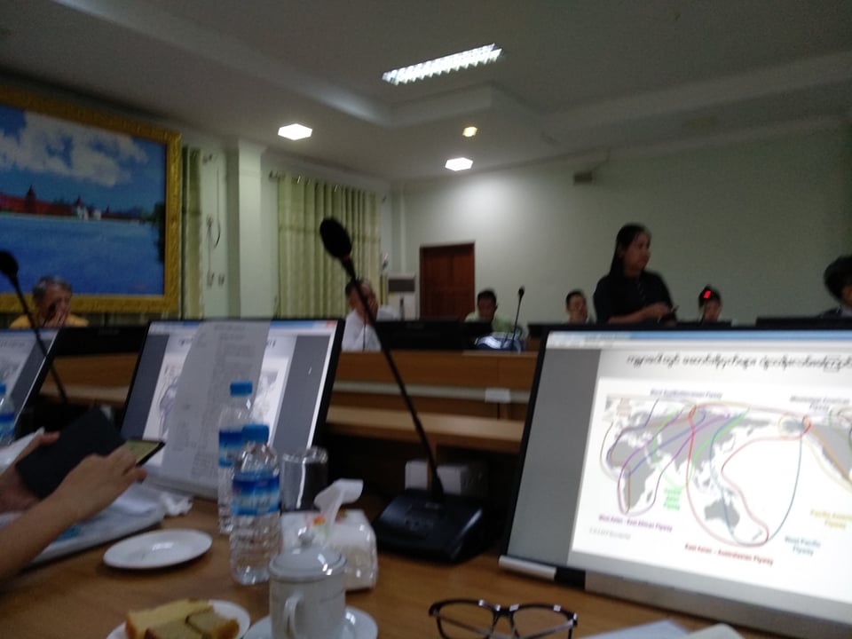 As the following up action for the conservation of these two important lakes by the Mandalay Region Government, the multi-stakeholder meeting on the wetlands conservation in central Myanmar is organized in August 2019. The representatives from Mandalay Region Government, Farmland Management and Statistic Department, Irrigation Department, Environmental Conservation Department (ECD), Forest Department, Agriculture Department, Mandalay City Development Committee (MCDC) and NGOs/INGOS: Biodiversity And Nature Conservation Association (BANCA), Myanmar Bird And Nature Society (MBNS), Wildlife Conservation Society (WCS) and International Union for Conservation of Nature (IUCN) joined the meeting. The discussion was mainly on the conservation plan of Phyu Lake, Paleik Inn and Sun Ye Inn for Baer’s Pochard and other migratory waterbird species.