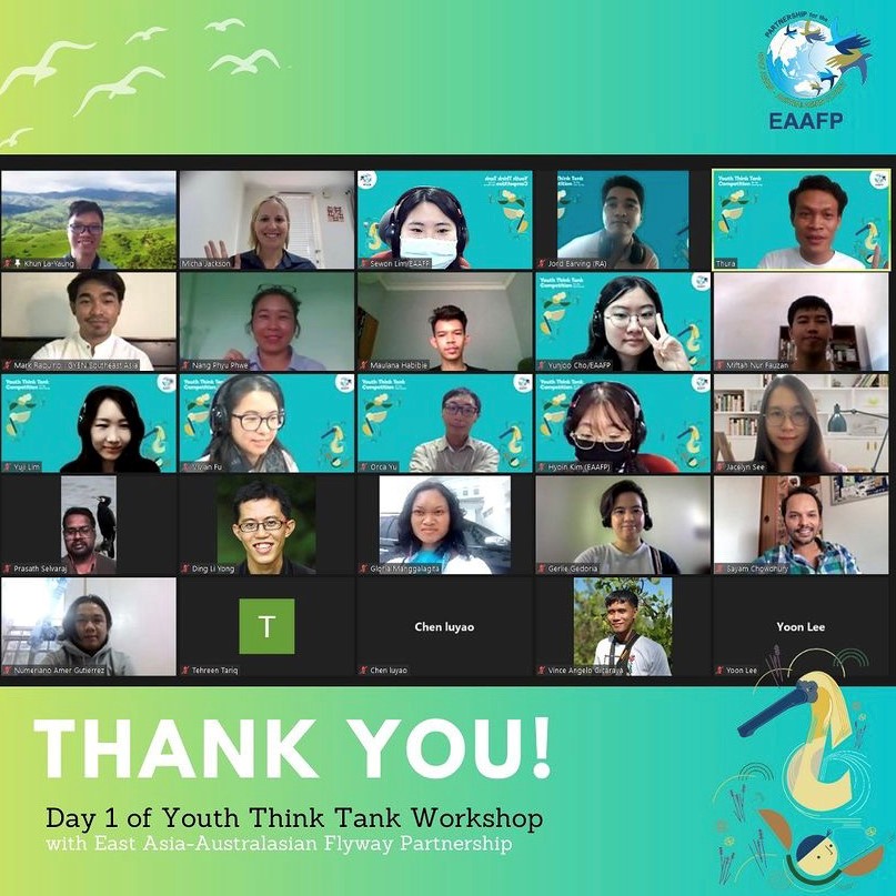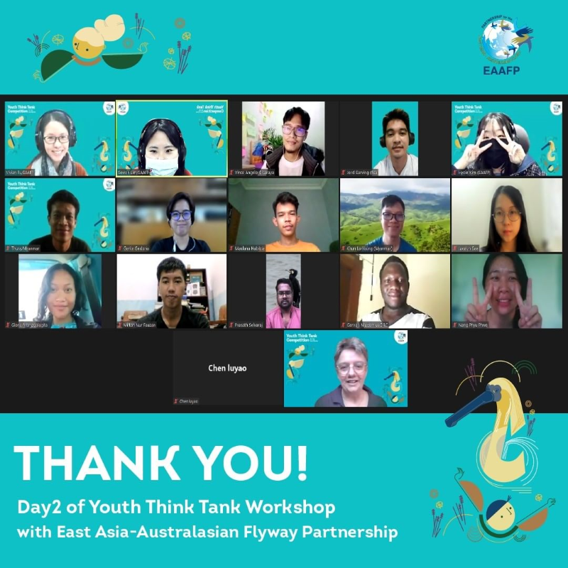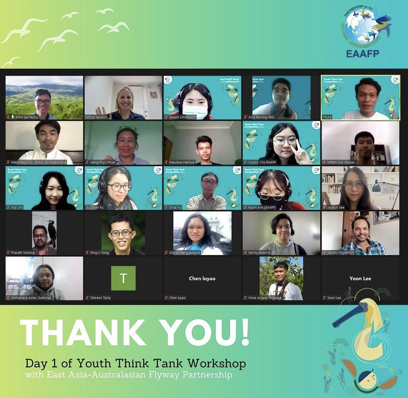 The first training workshop of Youth Think Tank competition for EAA Flyway —Understanding global agenda for environment and how youth are engaged was held on 6th and 7th November 2021. The training workshop is in line with the Think Tank Competition, aiming to build capacity on wetland and migratory waterbirds conservation for youth. The two-days workshop was held virtually, organized by EAAFP Secretariat and ayouth organizing team. Over 40 youth participants attended the workshops.
