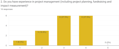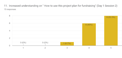 ![]() Fig. 3a Rating on increased understanding of how to design a good project plan using logical frameworks | ![]() Fig. 3b Rating on increased understanding of how to use project plan for fundraising |
