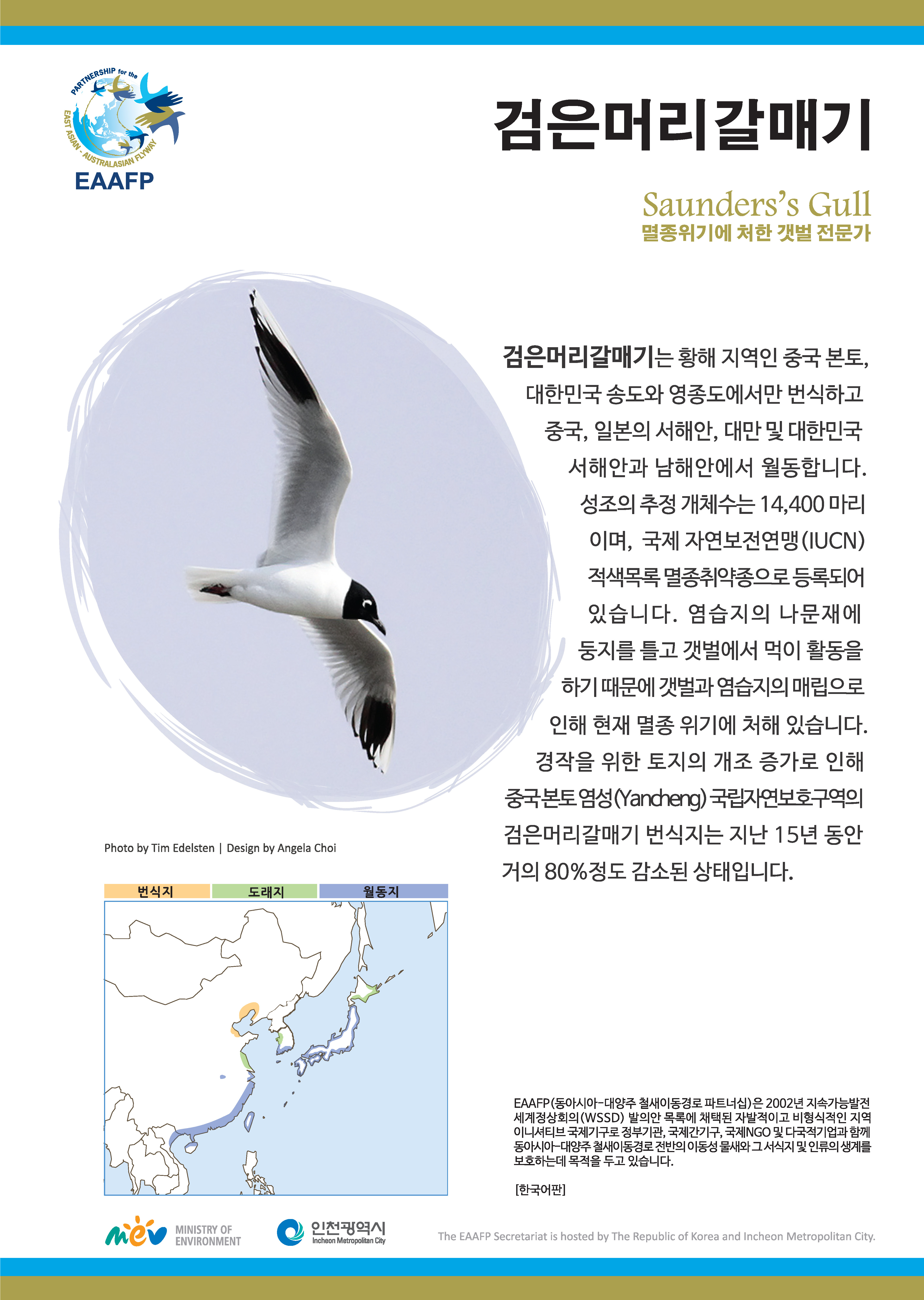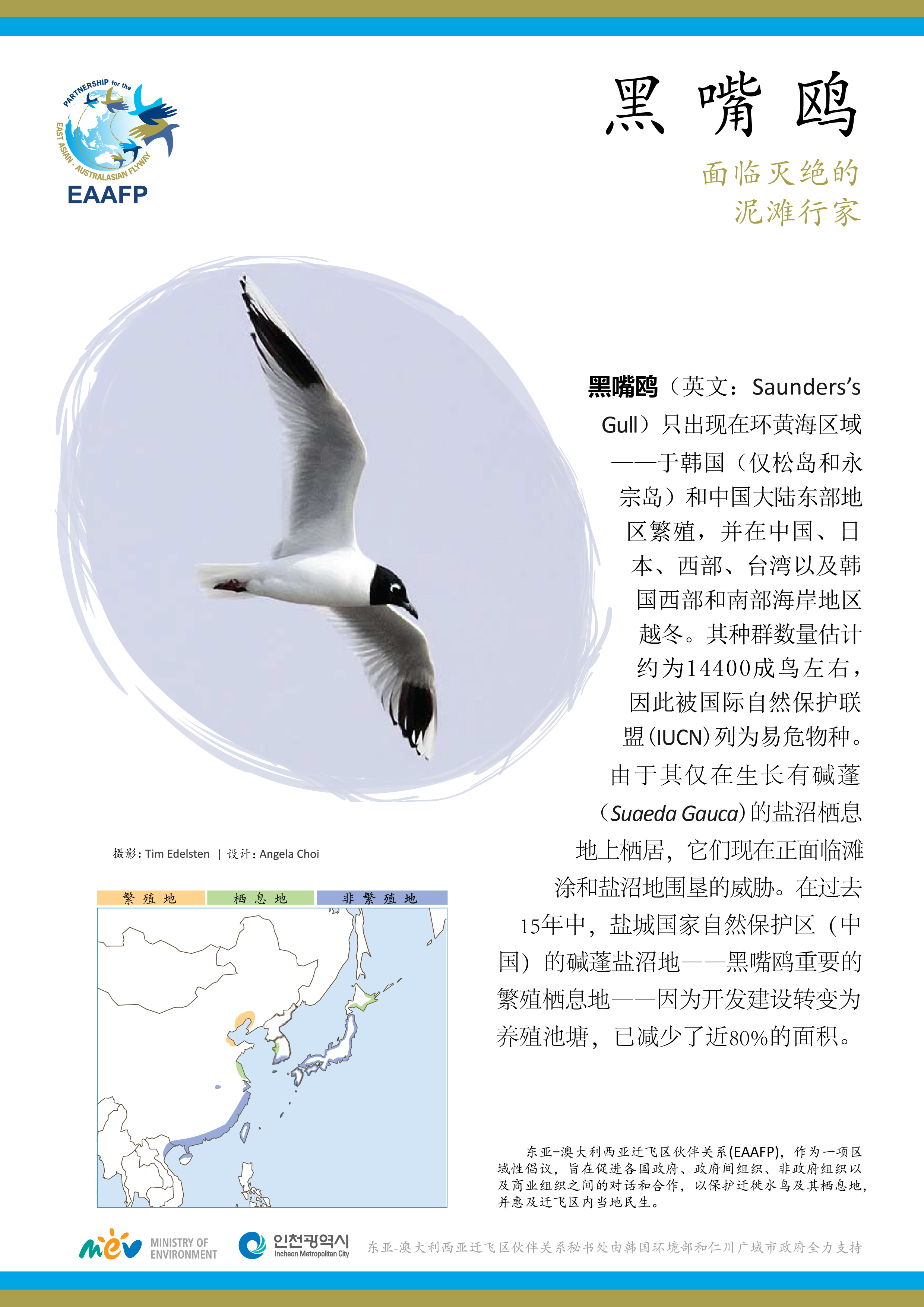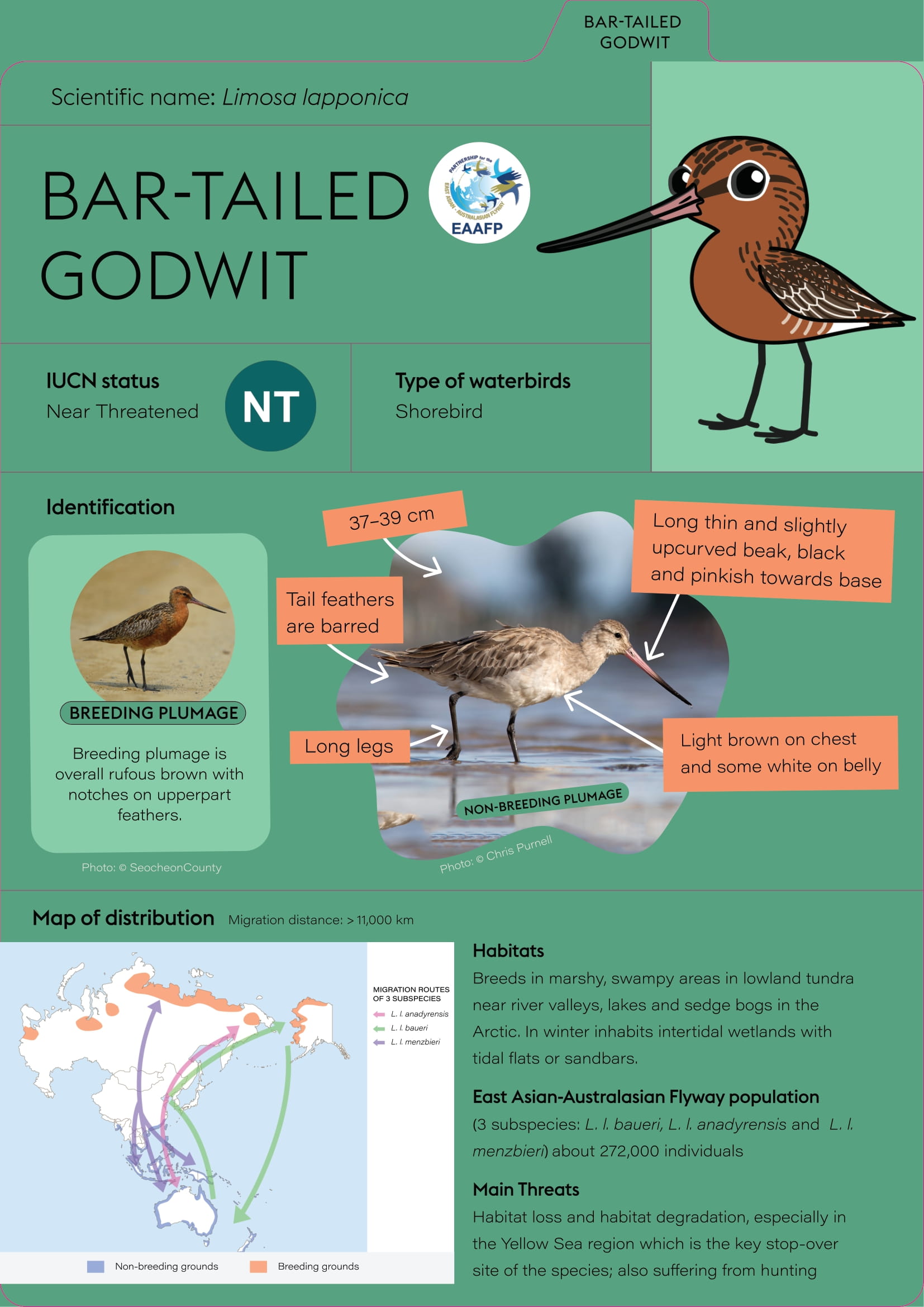 Here are five major species flyers of Spoon-billed Sandpiper, Saunders’s Gull, Black-faced Spoonbill, Bar-tailed Godwit and Far Eastern Curlew with their general species information and migration.