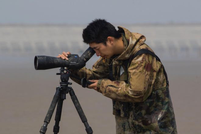 Zhang Lin, Shanghai’s leading birder and discoverer of Rudong as the most important stopover site for Spoon-billed Sandpiper © Birding Beijing ????