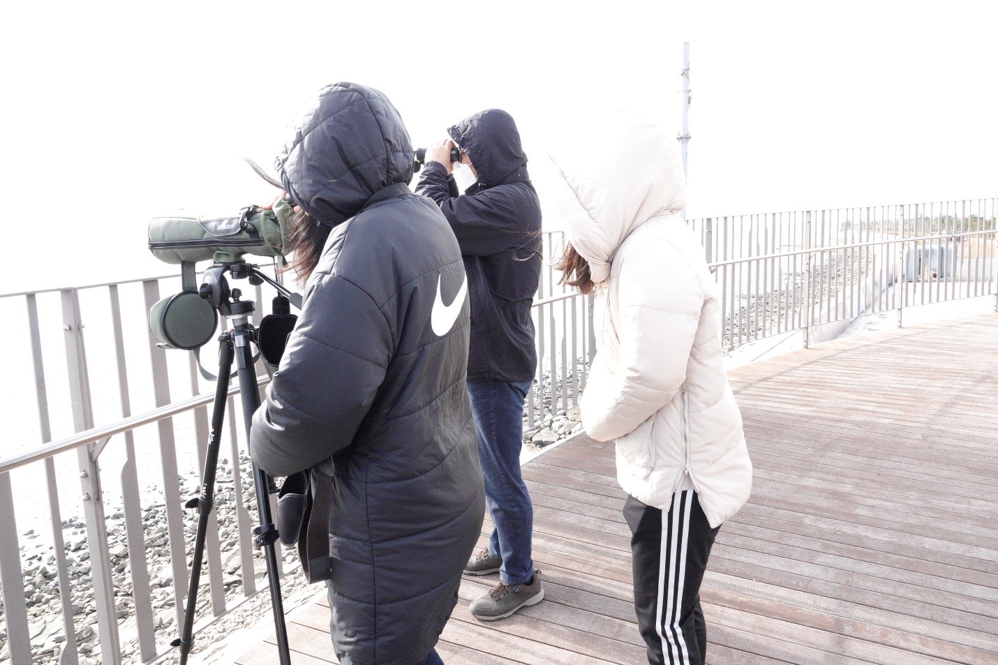 The workshop started with birdwatching at Songsan Reservoir, Yeongjong Island. The Songsan reservoir is a known habitat for many sea birds. Eastern Curlew, Bar-tailed Godwit, Black-faced Spoonbill, Chinese Egret, and Saunders’s Gull are among those species visiting here. Despite the cold weather, the team managed to learn about the habitats with background information from Mr. Docdngkoo Yun, Foundation Director.