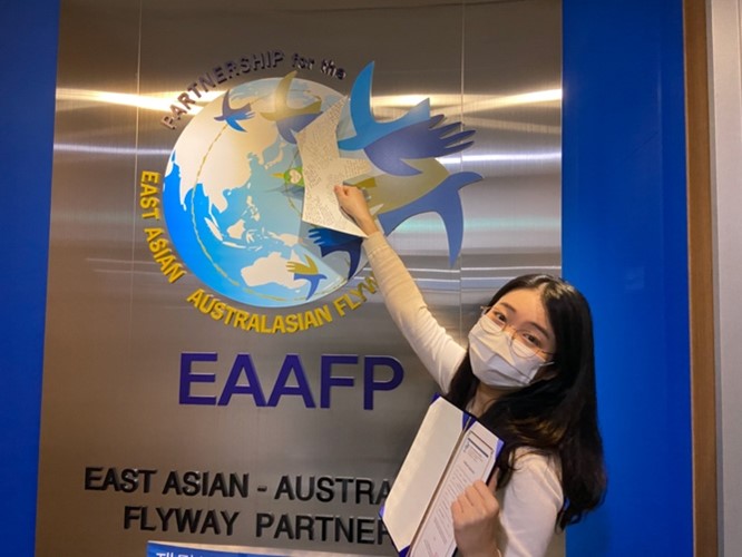 Working as an External Relations Assistant at EAAFP Secretariat allowed me to have on field experience and see what it means to work for biodiversity and habitat conservation. I learned what it means to have different organizations and countries come together for a common goal and had the honor to take part in the delicate work of engaging public and private sectors. From the very beginning of my internship, I was deeply engaged in [Bird-Meets-Arts], the collaborative project with Yeonsu Foundation for Arts and Culture (YSFAC). The six months project presents how different tools of arts and culture can be used to promote the importance of migratory waterbirds and their habitat. Another major task was assisting the launch of Corporate Champion Programme in Ulsan Metropolitan City. Setting the foundation of the new programme required lots of research on the region and global standard of ESG evaluation. This process widened my view on ESG and corporate engagement and helped me take another step in understanding the need of relationship building opportunities between different stakeholders.