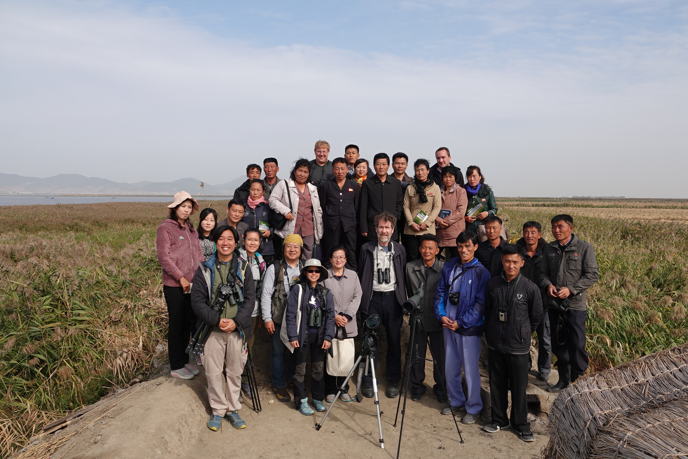 At the same time as the training workshop, a joint survey by researchers from MoLEP, Academy of Science of Korea, Hanns Seidel Foundation, WWF-Hong Kong and Hong Kong Bird Watching Society was carried out from 14th to 18th October. The team of over 10 people conducted bird surveys in Lake Tongchon and Kumya. On 17th and 18th, the participants who participated in the training workshop joined the survey team and had a taste of waterbird monitoring at Mundok Migratory Bird Reserve.