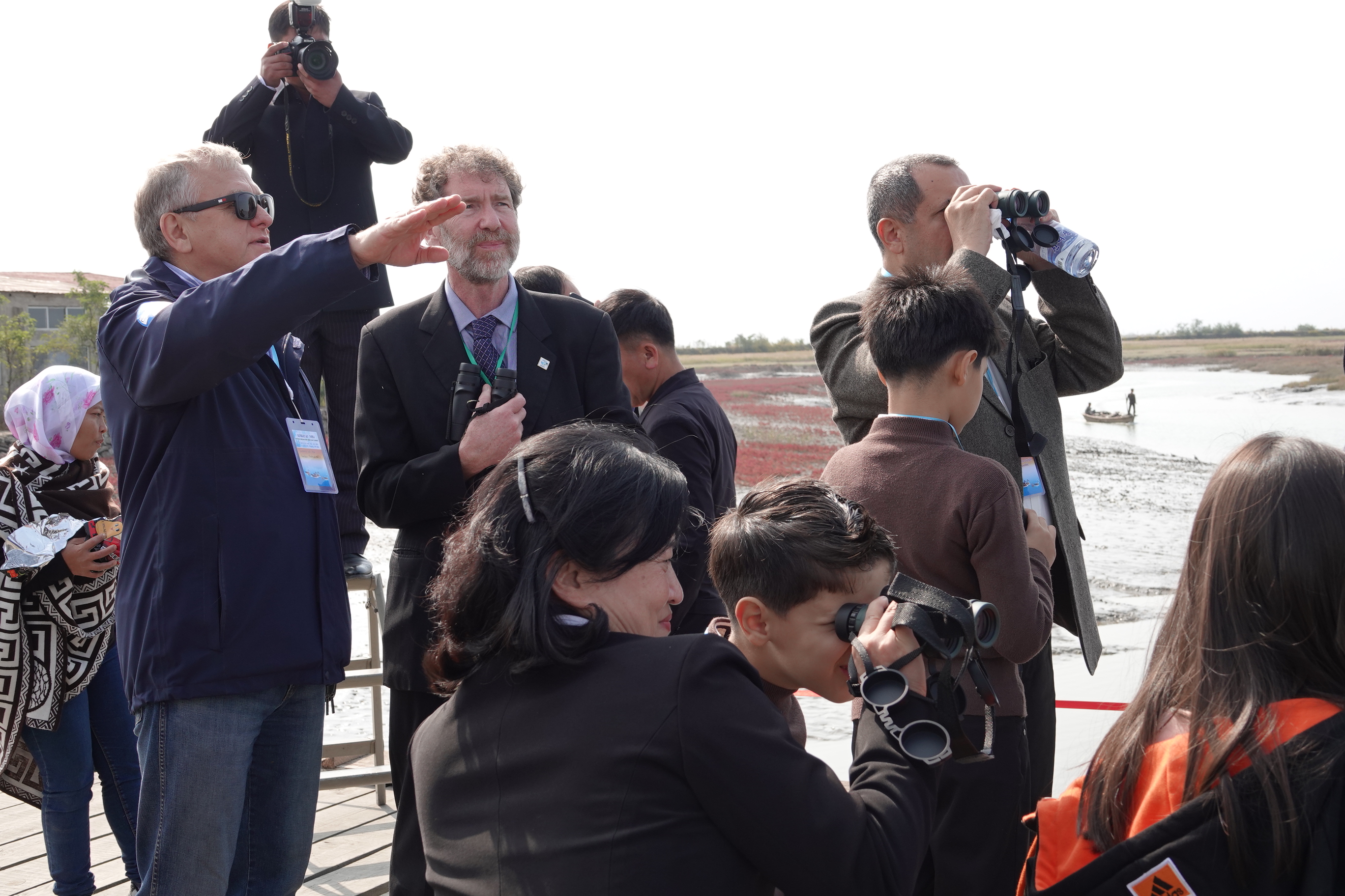 Participants watching birds at the Swan Goose Festival in Mundok (credit © Vivian Fu/EAAFP)