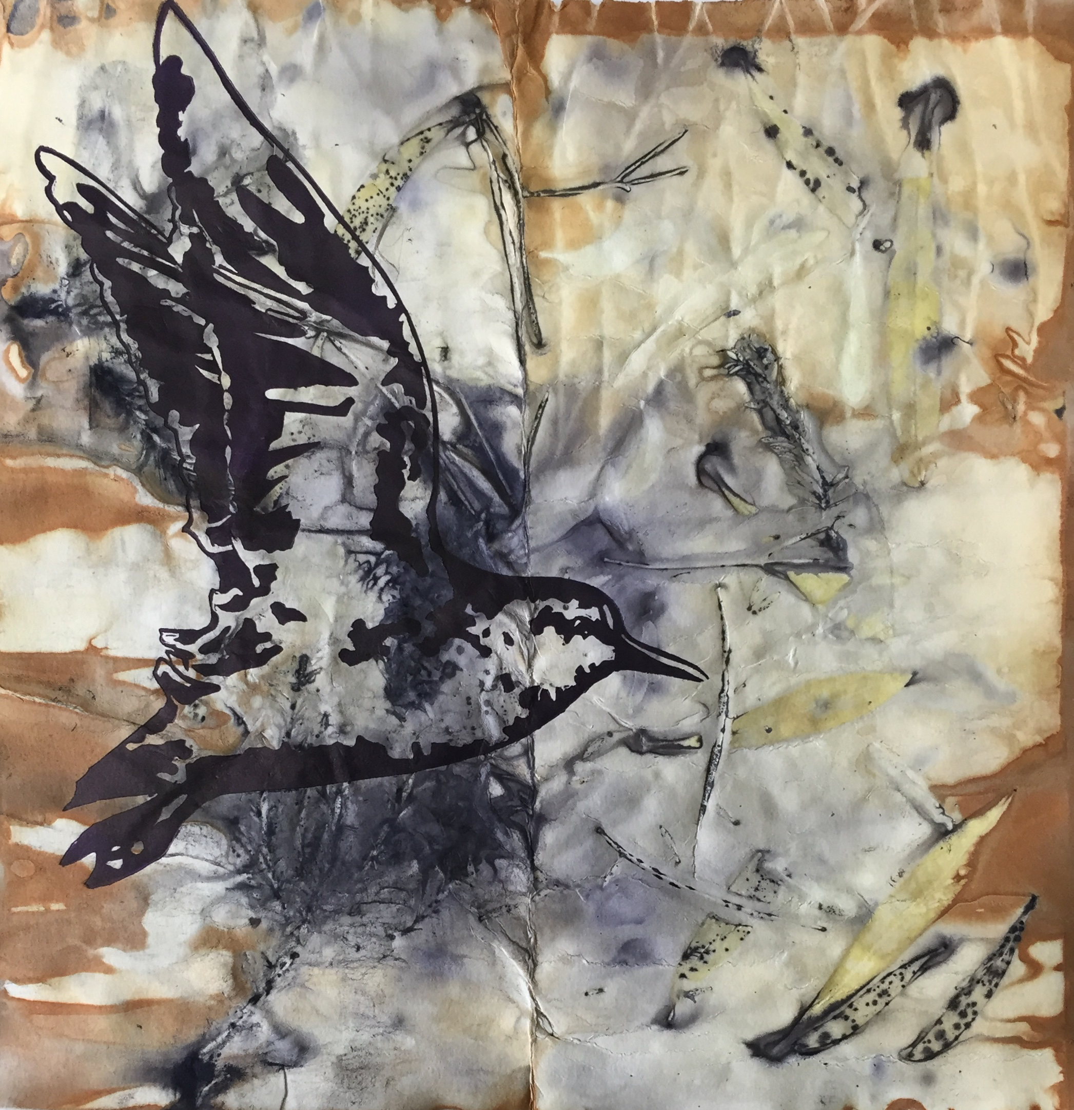 Kate: I have run three major projects now with migratory shorebirds as the starting point: the Flyway Print Exchange, 20 artists in the Flyway Print Exchange were from New Zealand, Australia, Indonesia, India, Singapore, South Korea, China, Japan and the USA, a one-off exhibition in Melbourne featuring work by migrant and refugee artists called From a Home to a Home: A Story of Migration; and the Overwintering Project: Mapping Sanctuary (since 2017). I have connected with artists by sending emails to international and Australian print workshops, by publicizing the project in art journals and through social media and using any art or birding network I could access.