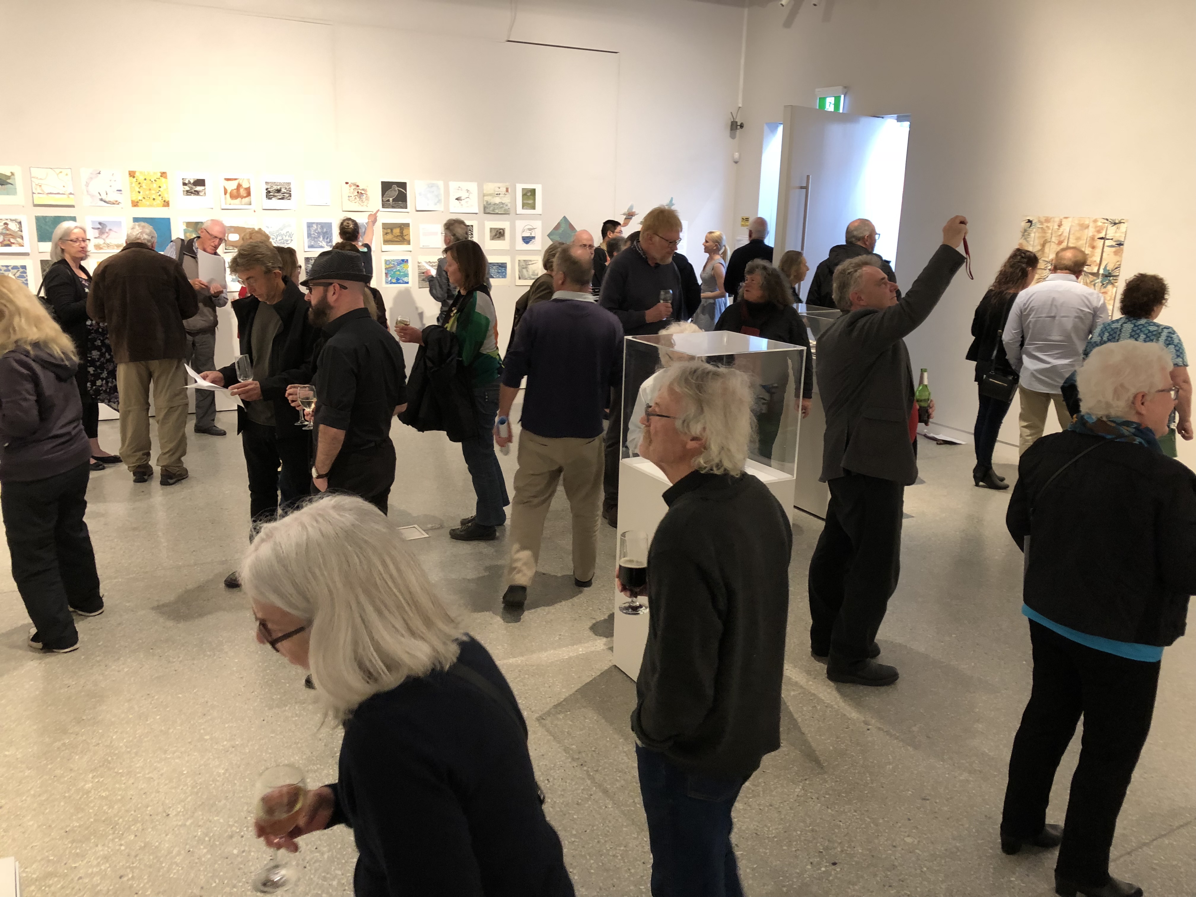 A shot from the opening of the Overwintering Project, Mapping Sanctuary at Moonah Art Gallery, Tasmania (photo © Kate Gorringe-Smith)