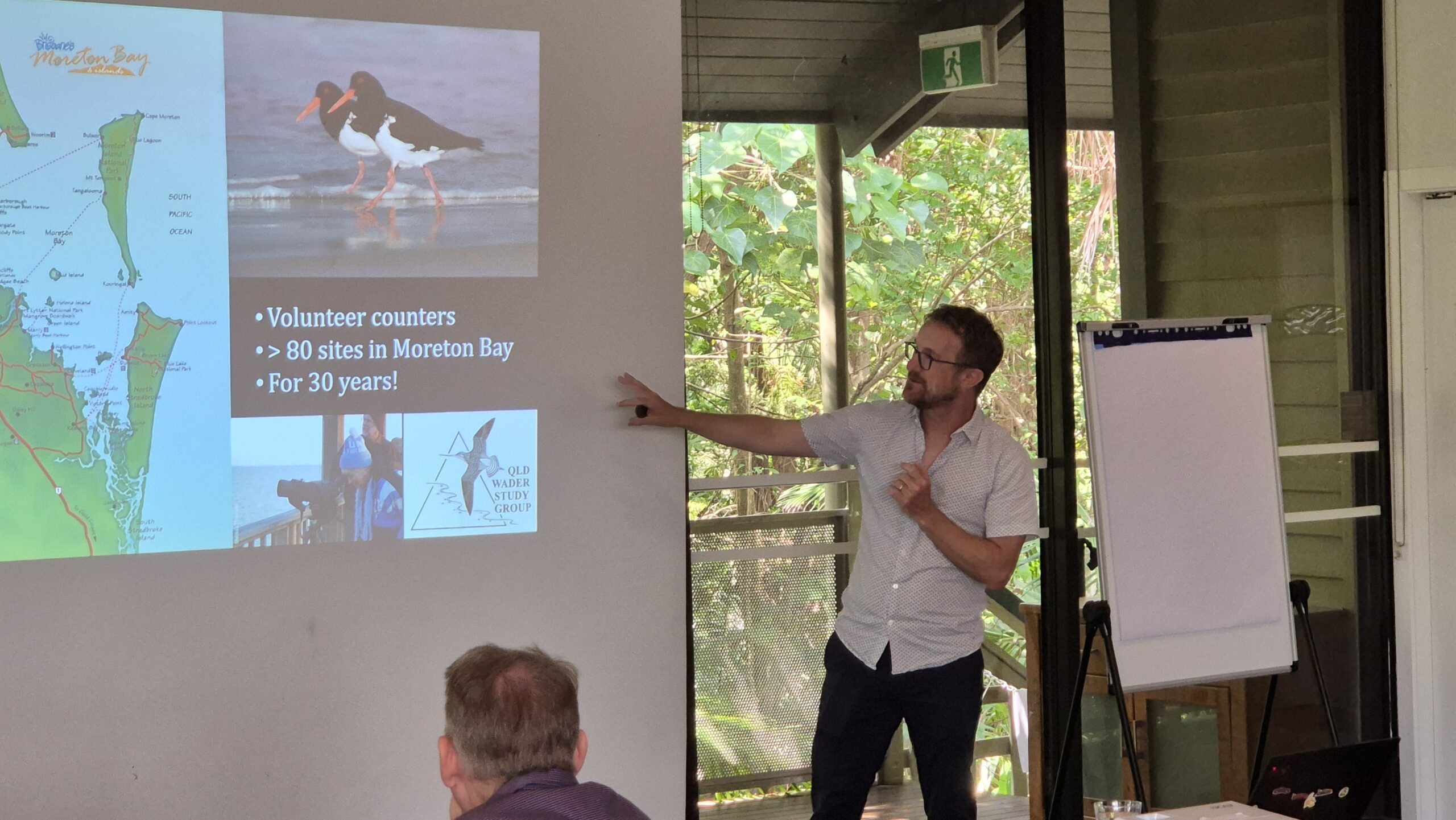Established in 1992 under the umbrella of Birds Queensland, the QWSG stands as a beacon of dedication to migratory waterbird conservation. With a membership exceeding 340 individuals, the group’s multifaceted approach encompasses surveys, banding, education, and collaborative endeavours. Their surveys, spanning southeastern Queensland’s diverse habitats, have yielded a treasure trove of data, with over 40,000 counts conducted from 1,412 locations, documenting more than 211,000 shorebird records. Delving deeper into their methodologies, the presentations explained the meticulous count procedures employed by QWSG. From designated monthly counts timed with high tides to comprehensive data collection encompassing various environmental parameters, the group ensures accuracy and consistency in their endeavours. Utilizing standardized formats and employing diverse counting methods, QWSG has been able to draw a detailed picture of Queensland’s shorebird populations, crucial for effective conservation strategies for government policies.