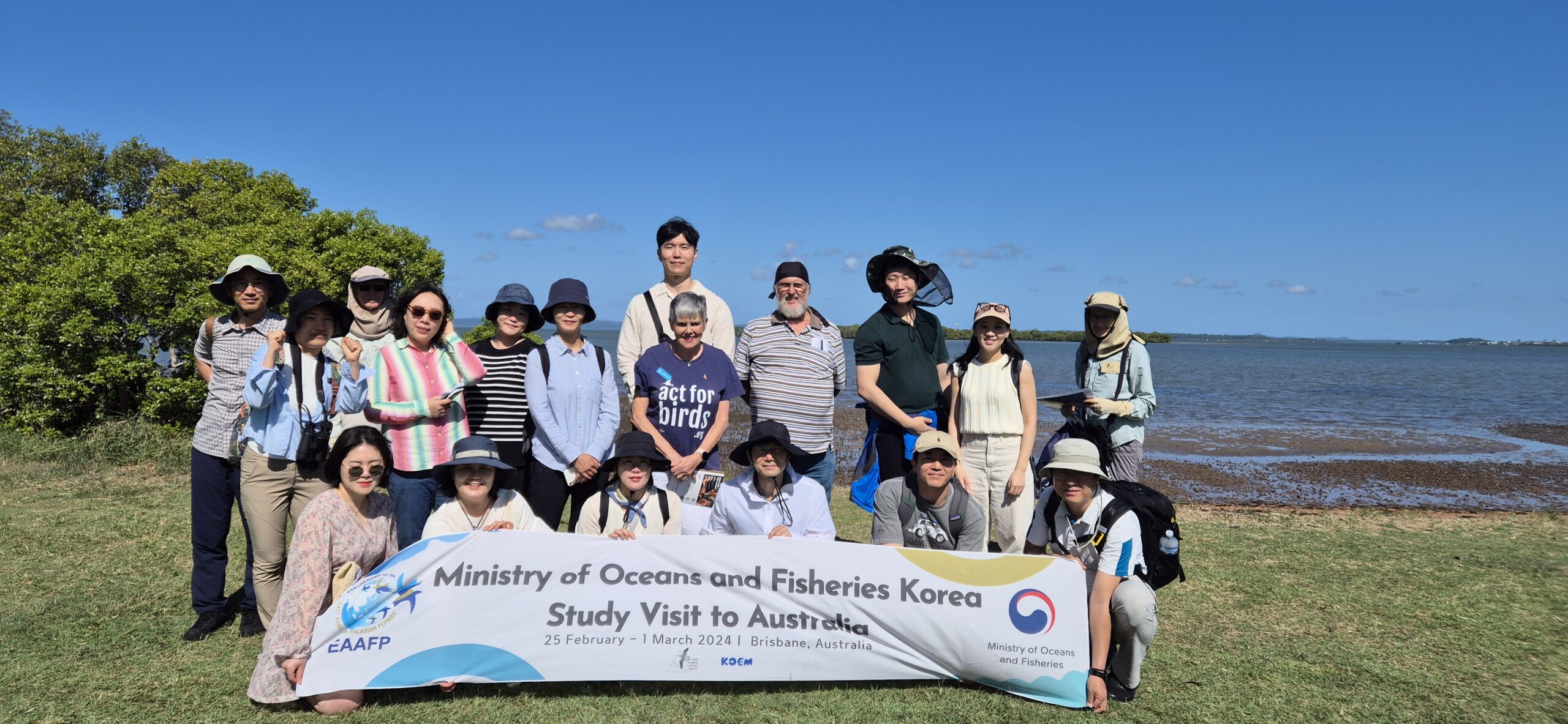 From February 25 to March 1, 2024, a group of 16 people visited the Moreton Bay region (EAAF013), Brisbane, Australia. The Korean delegation consisted of government representatives from Marine Ecology Division of the Ministry of Oceans and Fisheries Korea, Gochang county of North Jeolla Province, Boseong County of South Jeolla Province, Goheung County of South Jeolla Province, Muan County of South Jeolla Province, Korea Getbol World Heritage Promotion Team, representatives from Korea Marine Environment Management Corporation (KOEM), and Eco Horizon Institute. Ms. Yoon Lee (External Relations Manager) and Ms. Jisun Lee (Foundation Officer) facilitated the visit with a support from Queensland Wader Study Group (QWSG) as an Australian local implementing partner.