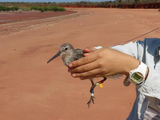 The transmitting birds are already giving a wealth of information, some new and some backing up our perceived knowledge of how these two species use the bay during the non-breeding season. Two of the Great Knots surprised as to differing degrees. One moved to 80 Mile Beach 165km south west of Roebuck Bay, a slight surprise but we know from colour-band resightings that a few birds do this. This bird has just in the last few days moved 50km south along the beach. It will be interesting to see if it was an ‘explorer’ in the experiment, from a quick view of the video footage it would appear so!