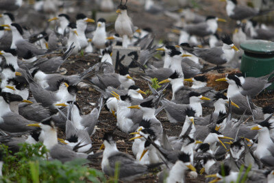 ![]() Breeding habitat of Greater Crested Tern in Zhejiang, China © Simba Chan | ![]() Dense nesting colony of Greater Crested Tern in Zhejiang, China © Simba Chan |
