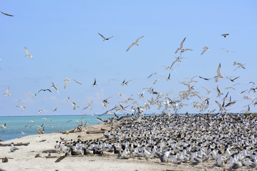 Tubbataha Reefs Natural Park holds the largest breeding colony of Greater Crested Terns in the Philippines with at least 14,000 individuals as of the last survey. They breed in the two islets of Tubbataha. These breeding grounds are off limits to tourists to prevent stress and disturbance especially during the breeding months of March to July. Marine park rangers conduct monthly estimates of adults and a more comprehensive quarterly inventory which includes eggs, pulli, and juveniles.
