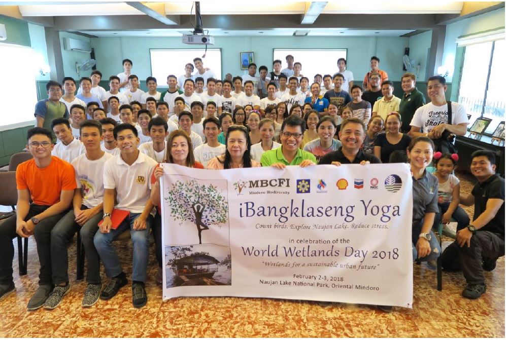 World Wetlands Day is celebrated annually in Naujan Lake National Park (NLNP) [EAAF062], a wetland of international importance—one of the Ramsar sites in the Philippines. This year, we at Mindoro Biodiversity Conservation Foundation, Inc. (MBCFI) opted to celebrate it with a little twist—we celebrated with yoga! Our activity called “Ibangklaseng Yoga” aims for the wellness of three aspects: 1) biodiversity through talks, exhibit and bird counting, 2) ecotourism through Bangklase tour, and 3) body and mind through yoga.