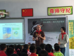 Baer’s Pochard conservation publicity in a local primary school at Hengshui lake ©Prof. Ding Changqing