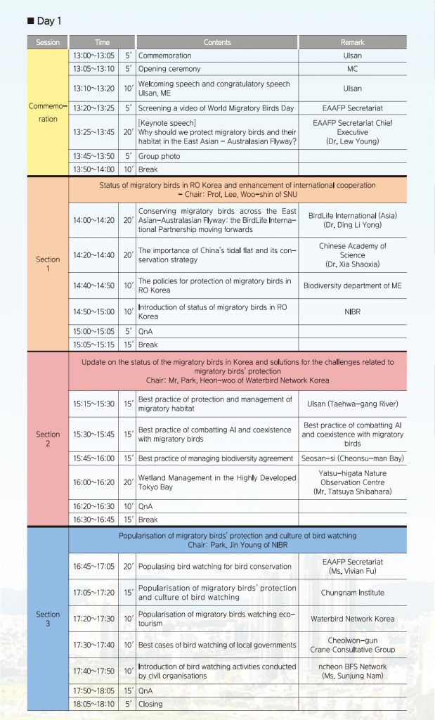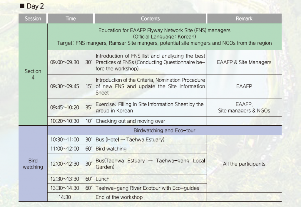 International Workshop for Flyway Site Managers from the RO Korea (11~12 Oct, Ulsan)