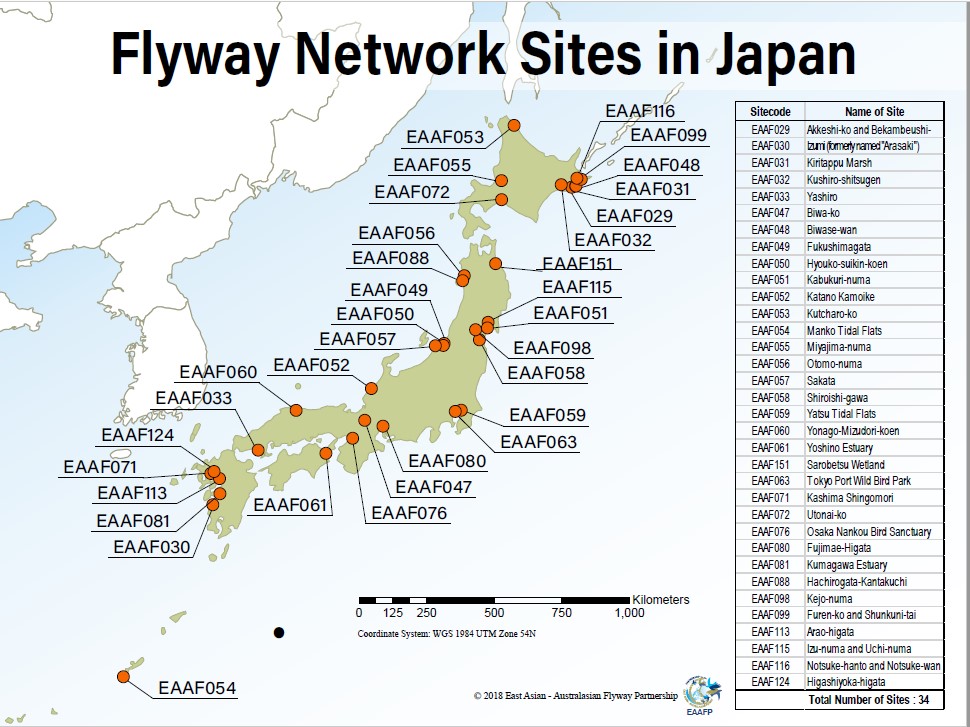 • Number of EAAFP Flyway Network Sites: 34