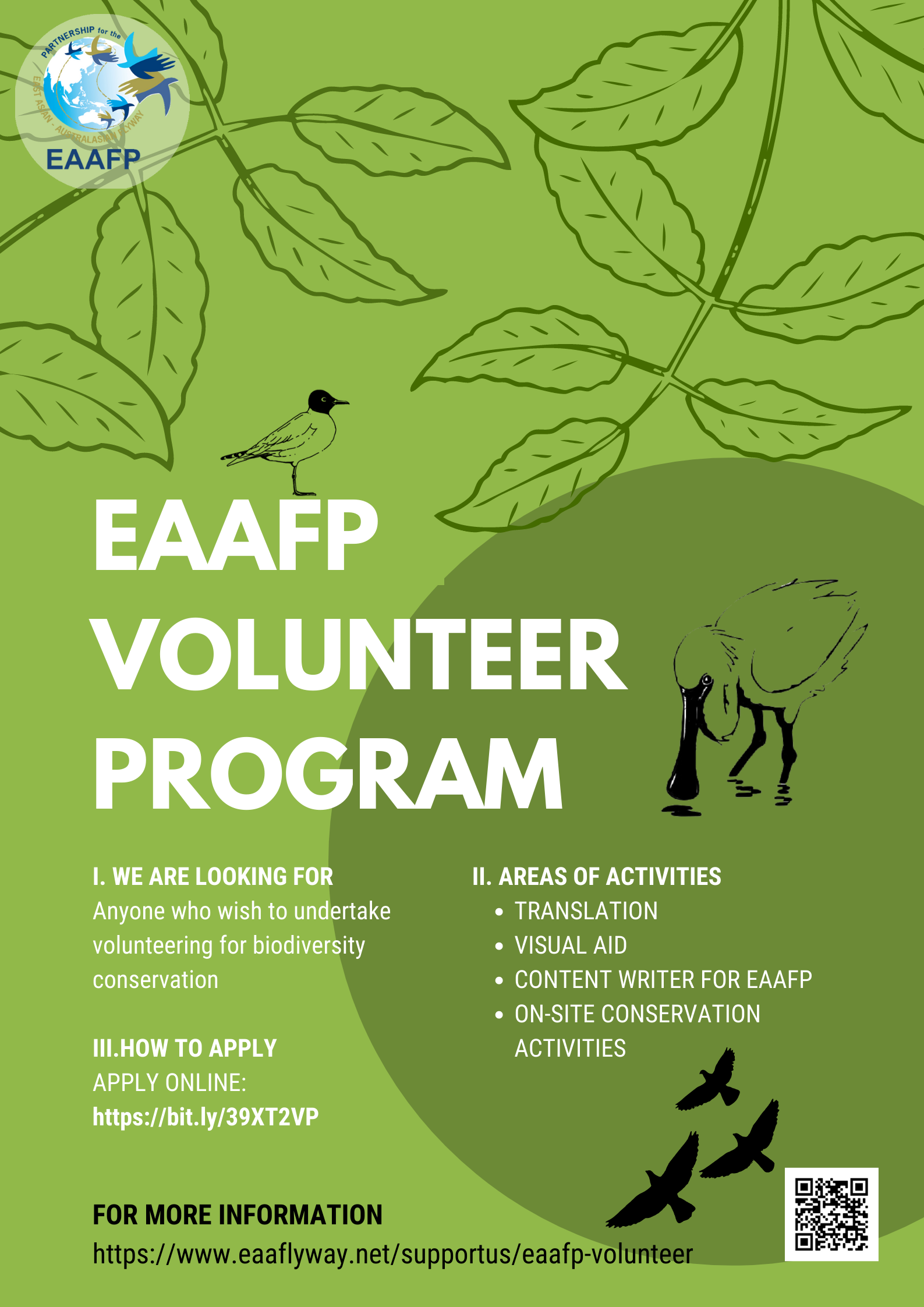 The EAAFP Secretariat provides four areas of volunteering activities. These activities are: