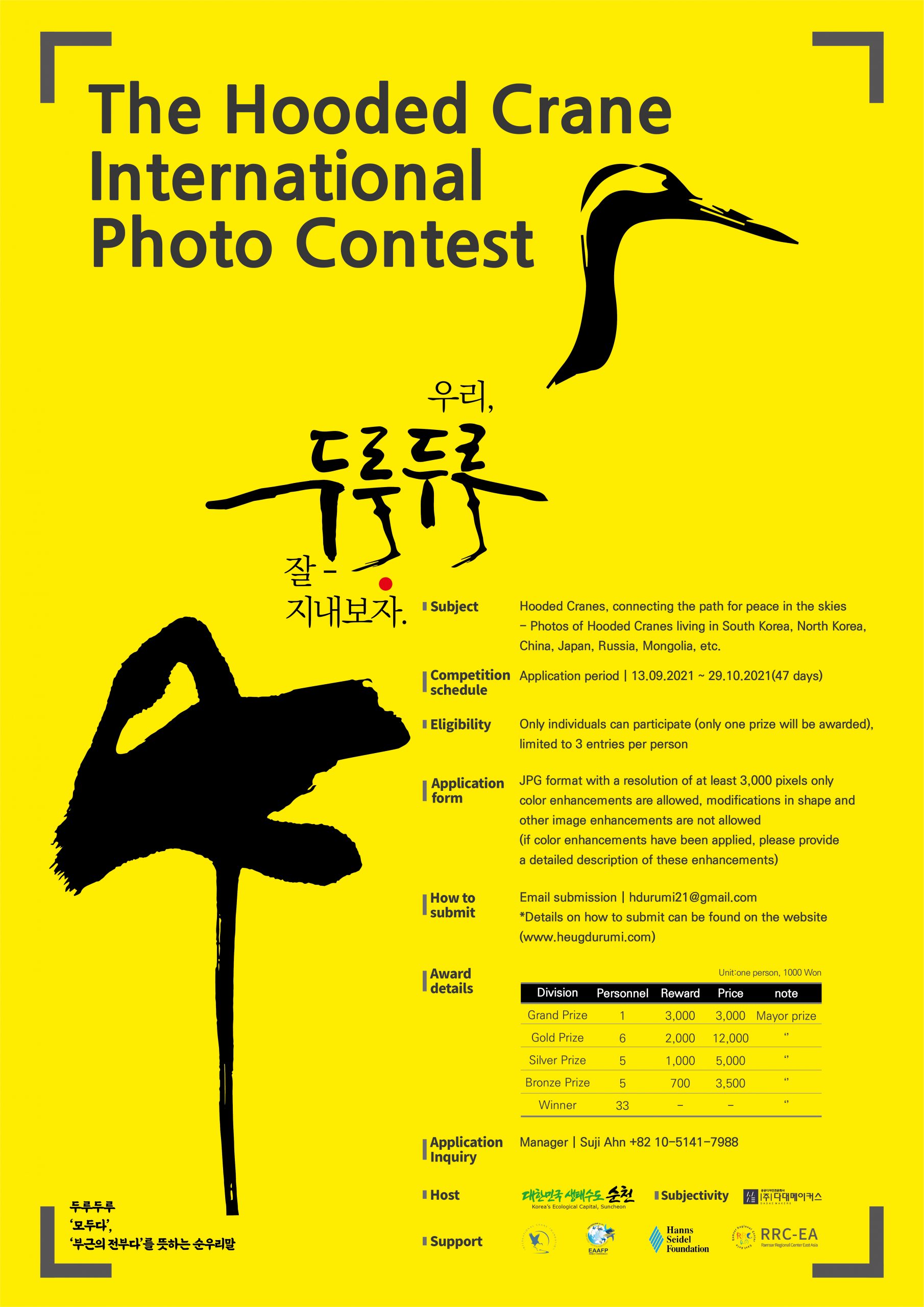 Suncheon City is launching the “Hooded Crane International Photo Contest” held from 13 September (Mon) to 29 October (Fri) 2021. The contest aims to promote unity among countries in Northeast Asia by capturing attractive photos of the internationally threatened bird, Hooded Crane.