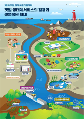 The Plan aims strengthening ecosystem services of tidal flats such as promoting policies that will revitalize tidal flat ecotourism, operate a secretariat to train and educate ‘tidal flat ecology experts’ and form a training institution to design and evaluate its curriculum. ‘Tidal flat ecotourism certification system’ and ‘tidal flat eco-village designation system’ will be introduced followed by a plan to support programs that will expand the ecotourism infrastructure, discover and share good practices, and support experts, etc. In order to raise awareness of the value of tidal flats to the general public, youth, fisherman etc., virtual programs will be developed through Maritime Museum, and the Institute of Marine Biological Resources.