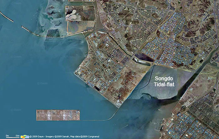 Songdo Tidal-flat and Sorae Creek (Photo © http://maps.daum.net, source: Birds Korea- http://www.birdskorea.org/Habitats/Wetlands/Songdo/BK-HA-Songdo-Tidal-flat-reclamation-2009-03.shtml)
