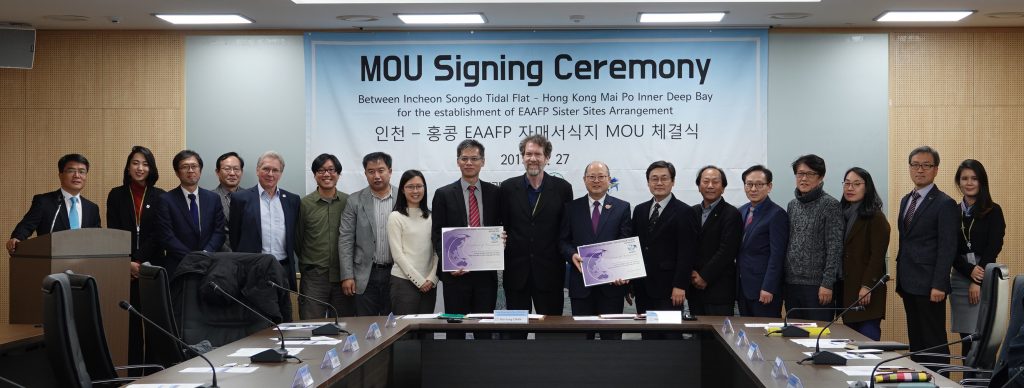 On 27th November, 2019, Government from Incheon Metropolitan City, Republic of Korea (Ro Korea) and Hong Kong Special Administrative Region, People’s Republic of China, signed a Memorandum of Understanding to link Songdo Tidal Flat (EAAF 145) and Mai Po – Inner Deep Bay (EAAF 003) under the EAAFP Sister Site Programme (link). This will help to enhance knowledge and information sharing on habitat management and shared migratory species.