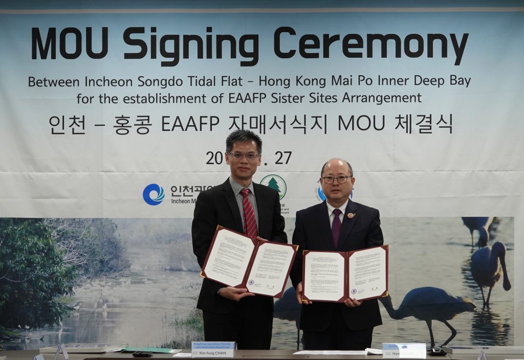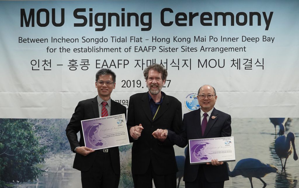 The signing of EAAFP Sister Site Arrangement MoU between Incheon Songdo Tidal Flat and Hong Kong Mai Po Inner Deep Bay ©EAAFP