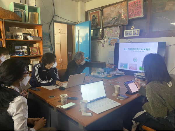 The next stop was the Freshwater Ecology Lab of Pusan National University. Prof. Geajae Joo gave a presentation on the status of the Busan Eco-city and Eulsuk Island. The researchers and Professor Joo from the lab were involved in the research which supported opening the water gate of the Nakdong Estuary Bank. Thanks to the meeting, the team could understand more about the perspective of the government and public corporations of Ro Korea on river management of the site.