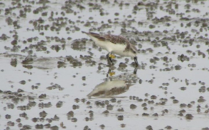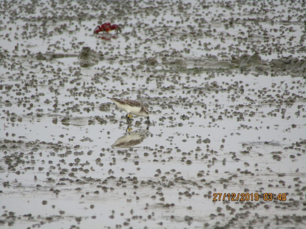 The famous Spoon-billed Sandpiper Lime 27 returning for the sixth winter to Nan Thar. Photo © Ren Noe Sou