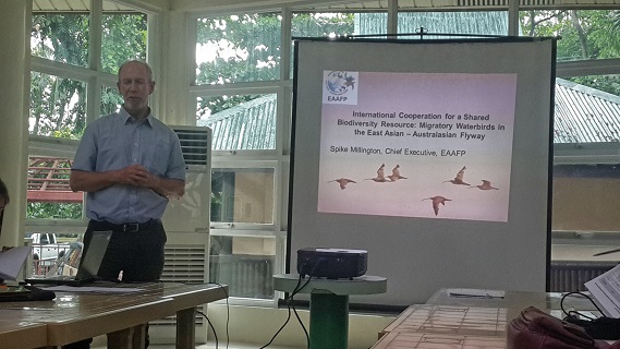Spike Millington, Chief Executive of the East Asian-Australasian Flyway Partnership (EAAFP) visited the Republic of the Philippines from 23-28th May 2015. After participating in training of members for Haribon Foundation, the Birdlife Partner in Philippines, he met with Undersecretary Ignacio of the Department of Environment and Natural Resources (DENR), Roberto Oliva, Executive Director of the ASEAN Centre for Biodiversity (ACB), Clarissa Arida and Sheila Vergara, also from ACB and Cristi Nozawa from BirdLife Asia. Spike provided a briefing on EAAFP, including updates from MOP8 and discussed future collaboration and potential support from Philippines to the EAAFP Secretariat. Director Oliva reviewed cooperation with ASEAN member states and the EAAFP South East Asia Network proposed at MOP8.