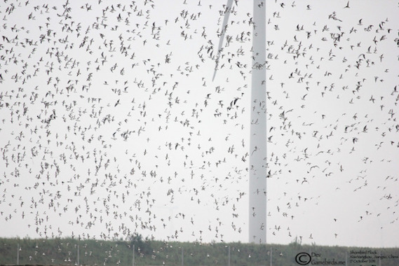 Majority of the mudflats were reclaimed and windmills were installed and still more windmills were being installed and more turbines and blades are waiting to be installed. The windmills can be seen all the way to the horizon, not sure where this will lead to. Beware U.S, by 2020, first batch of Chinese windmills will be seen from Hawaii. All birders know windmills by their famous name “Bird Killers,” imagine thousands and thousands of windmills stacked on the mudflats? Since 2013, I didn’t witness the mass congregation of shorebirds in Yangkou, the disappearing mudflats and the industrialization of this small town. The windmills took over the mudflats and what’s left for the birds were the high tide roosting areas which were then reclaimed for the “Chemical Industrial Park.” As of 2015, the Chemical Industry park is fully functional emitting all sort of odours. When I first visited Yangkou in 2011, my colleagues told me that the town is famous for fresh sea food and frankly, one can smell the fresh catch of fishes when the fishing vessels enter the port. Now, the town reek’s of Chemical odour, even from miles away.