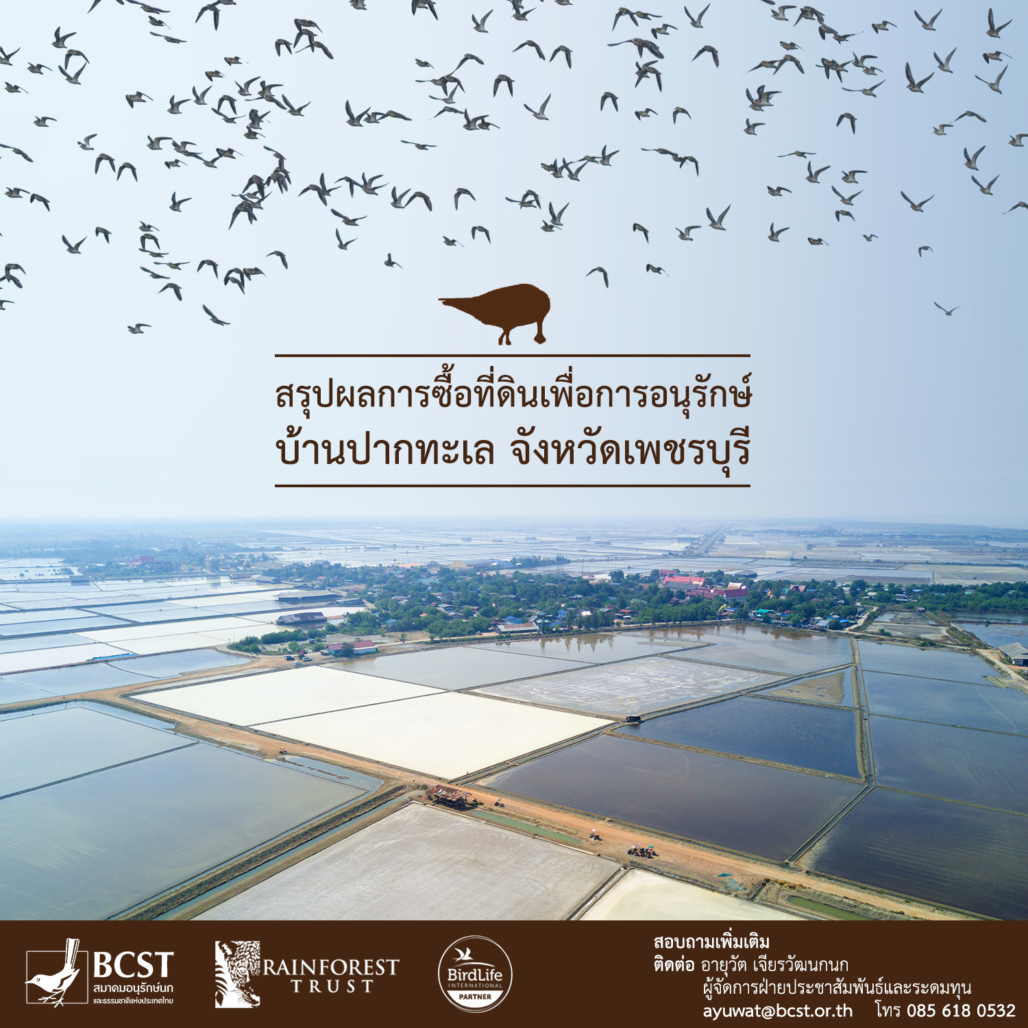 On 6 September 2019, representatives from Bird Conservation Society of Thailand (BCST) has completed the purchase of the land at Pak Thale, Phetchaburi. The purchased land will be managed as a nature reserve for wintering Spoon-billed Sandpipers and other migratory shorebirds in the long-term. It will also serve as a place for shorebirds and coastal ecosystem research and ecotourism. This purchase would not be possible without the support from the Rainforest Trust, Suthirat Yoovidhya Foundation, Reutrakul family, Kanjanavanit family and everyone who has donated for this cause. Once again, BCST would really like to express our sincere gratitude for supporting us to secure winter home for these globally threatened species.