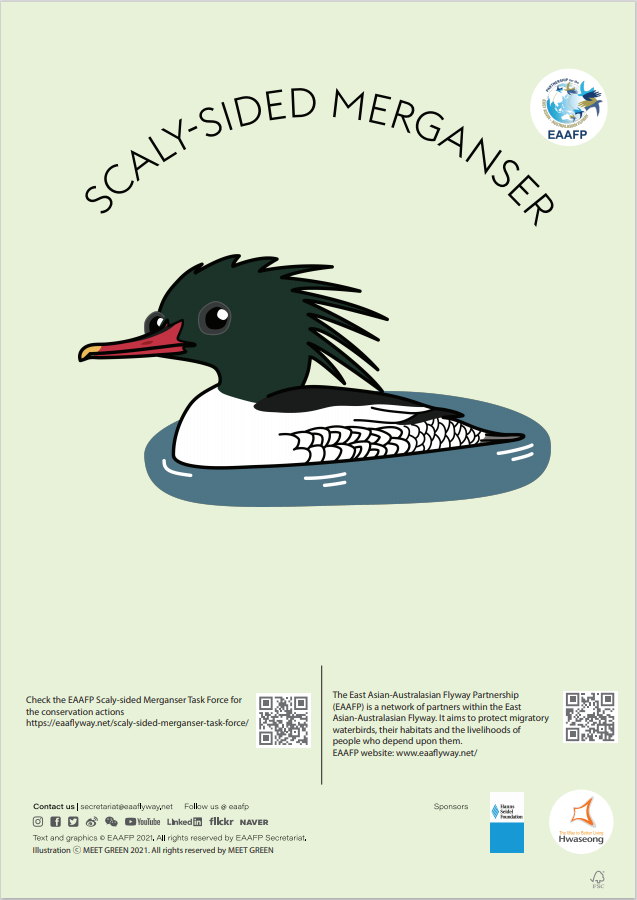 - Important documents, reports and resources can be found in Scaly-sided Merganser Task Force: https://eaaflyway.org/scaly-sided-merganser-task-force/