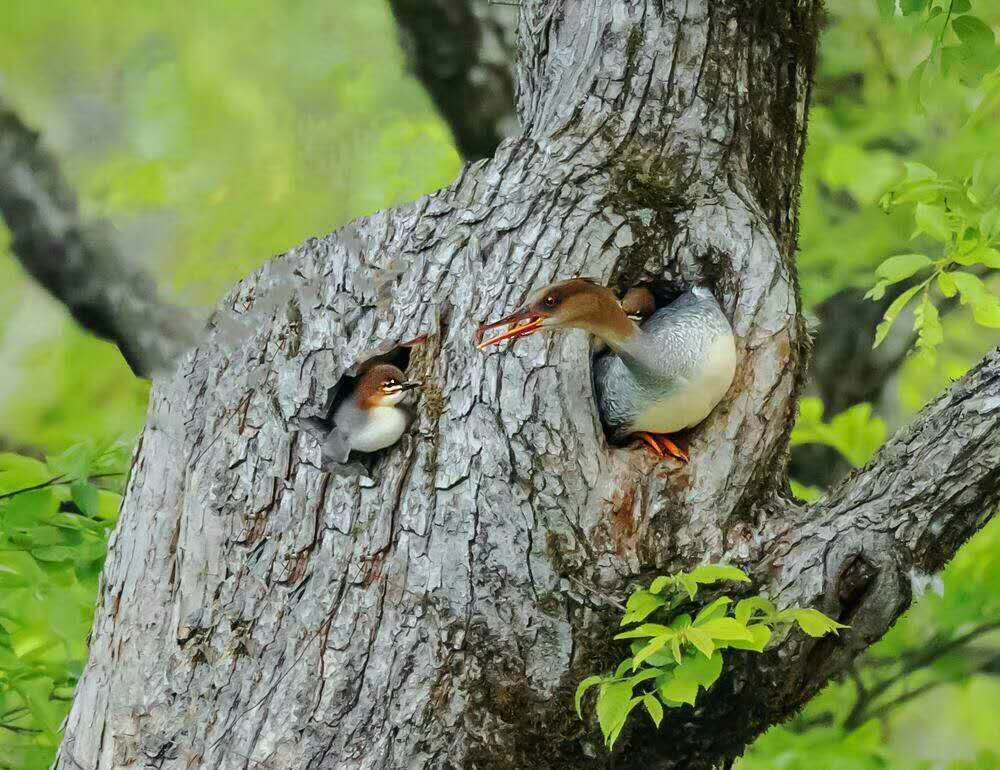Scaly-sided Merganser reeding in tree holes © Bishui Nature Reserve, China