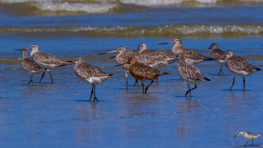 Bar-tailed Godwits with Grey Plovers ©Ron Chew