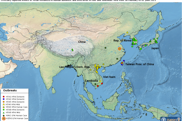 Continue readingUpdates of worldwide avian influenza situation by FAO/EMPRES-AH (Feb-June 2021)
