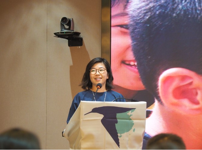 Chen Shihong, Chief Executive of Wild Bird Society of Taipei makes a speech. His talk focuses on nature conservation, nature education and bird conservation, and how to promote nature conservation through nature education. 陈仕泓,台北市野鸟学会总干事,专注于自然保护、自然教育以及鸟类保护保育,如何利用自然教育促进自然保护的工作 © MCF