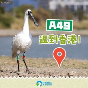 To study migration routes of waterbirds, coloured and numbered rings are usually put on the legs of migratory birds by researchers aiming to collect information of the birds’ migration routes and ecology. One of the tracked BFS was A49. It was rescued in Hong Kong in 2021 before being released back into the wild after recovering from its injuries.