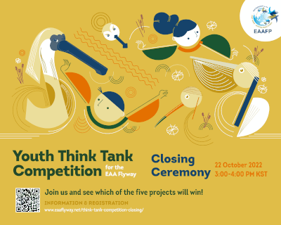 After a wonderful 2-year-long journey, the Youth Think Tank Competition for the EAA Flyway is coming to an end. To celebrate the accomplishments by each team and to announce the winner of the competition, we would like to invite everyone to join our Closing Ceremony for the Youth Think Tank Competition. Join the Ceremony and listen to the 5 selected teams present their projects, interact and share their experiences about the implementation of their projects.