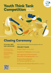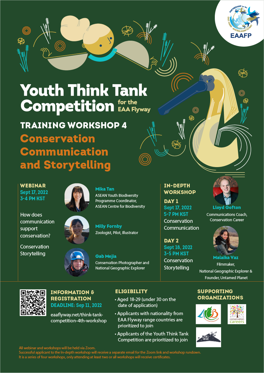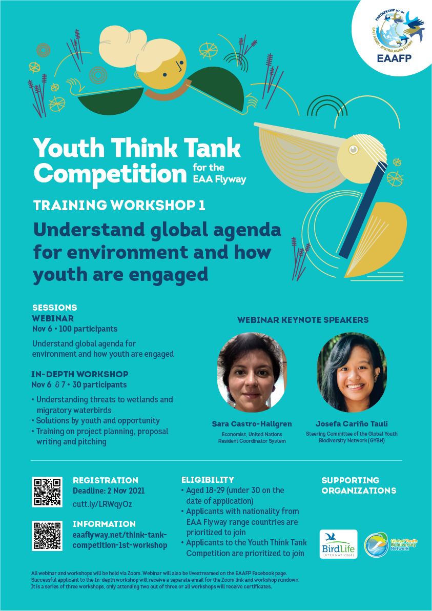 The Youth Think Tank Competition for the EAA Flyway is continuing the vision from the 2020 Flyway Youth Forum to achieve the goal: “Youth along the EAA Flyway are actively participating in the conservation of wetlands and migratory waterbirds at different levels, from policy and decision-making to grassroots and local community, making positive changes in their local to global communities.”